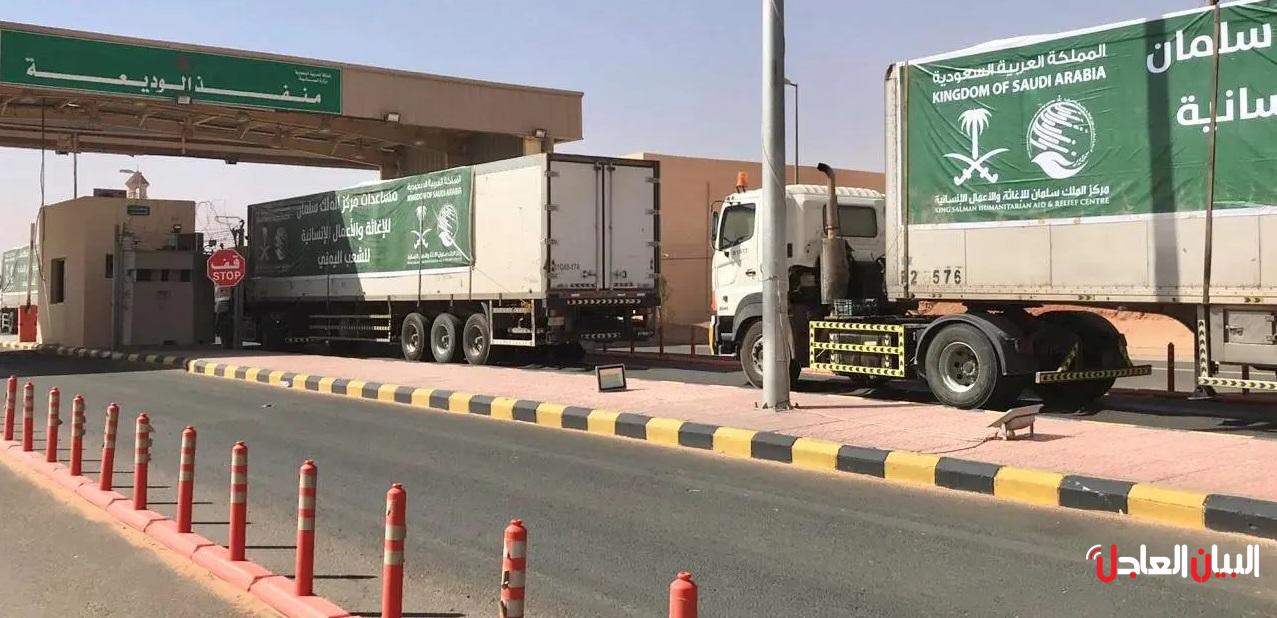 42 شاحنة إغاثية مقدمة من مركز الملك سلمان للإغاثة تعبر منفذ الوديعة
