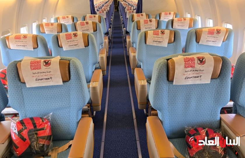 هذا وتزينت مقاعد الطائرة بشعار الاحتفالية ” حيث يصنع التاريخ رحلة المجد تبدأ من هنا ” في إشارة للقلعة الحمراء النادي الأهلي كما قدمت مصرللطيران كافة تسهيلات السفر اللازمة لضيوف المارد الأحمر المشاركين في هذا الحدث الرياضي الكبير بما يليق بمكانة جمهورية مصر العربية في استضافة الأحداث الدولية .