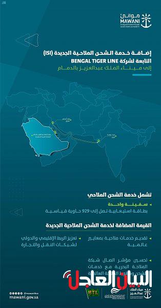 وتُسهم الخدمة الجديدة في ربط ميناء الملك عبد العزيز بالدمام بمينائي موندرا الهندي، وأم قصر العراقي بعدد سفينة واحدة؛ تبلغ طاقتها الاستيعابية 929 حاوية قياسية، بداية من 19 فبراير لعام 2023م.