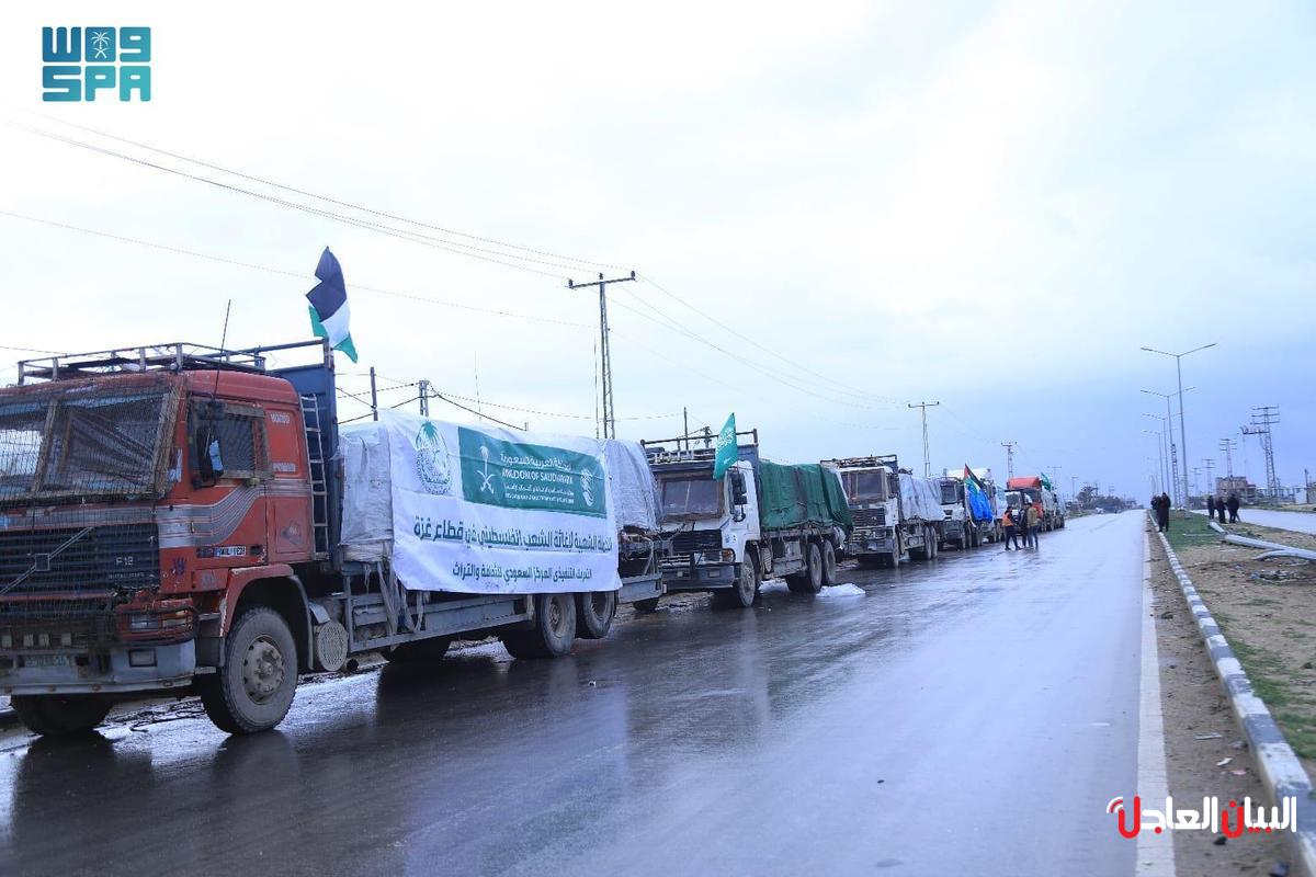 وصول 34 قافلة إغاثية سعودية جديدة إلى جنوب قطاع غزة