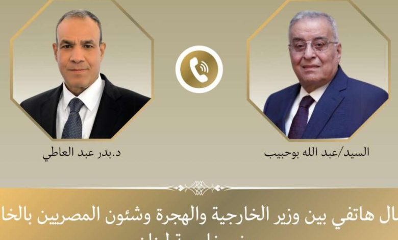 جرى اتصال هاتفي بين د. بدر عبد العاطي وزير الخارجية والهجرة و عبد الله بوحبيب وزير خارجية جمهورية لبنان الشقيقة يوم السبت ٤ يناير، حيث ناقش الوزيران آخر المستجدات على الساحة اللبنانية فى ضوء قرب انعقاد جلسة البرلمان اللبناني لانتخاب رئيس جديد.