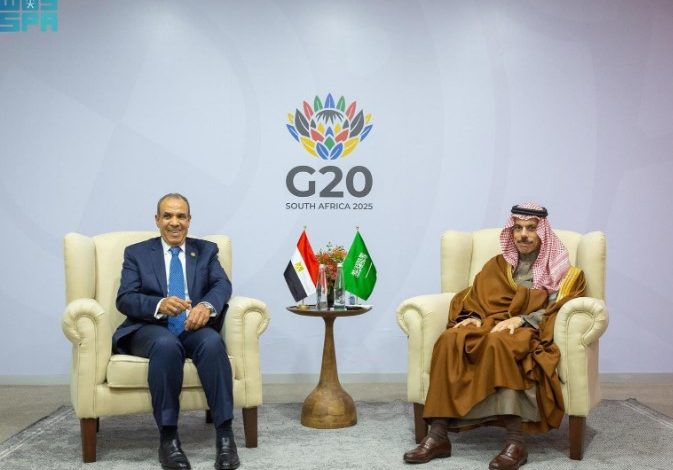 التقى صاحب السمو الأمير فيصل بن فرحان بن عبدالله وزير الخارجية، اليوم، معالي وزير الخارجية والهجرة وشؤون المصريين في الخارج بجمهورية مصر العربية الدكتور بدر عبدالعاطي، وذلك على هامش اجتماع قمة قادة دول مجموعة العشرين (G20) بمدينة جوهانسبرغ في جمهورية جنوب أفريقيا.
