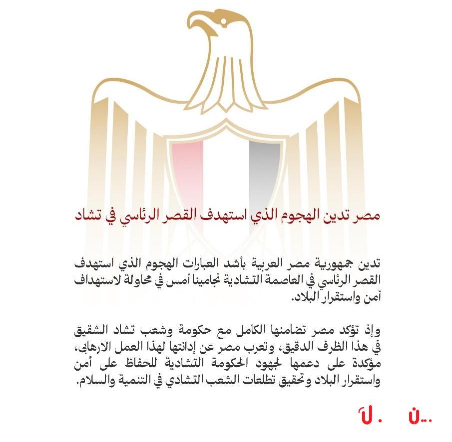 أصدرت وزارة الخارجية والهجرة، بيانا صحفيا، اليوم، لادانة الهجوم على القصر الرئاسي في تشاد، الذي قام به عدد من المتمردين،…