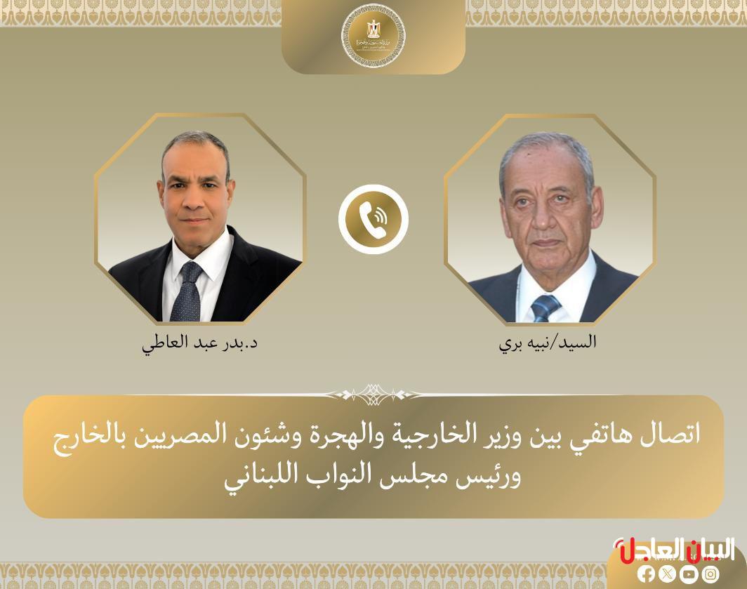 أجرى الدكتور بدر عبد العاطي وزير الخارجية والهجرة، اتصالًا هاتفيًا يوم الأربعاء ٨ يناير، مع نبيه بري، رئيس مجلس النواب…