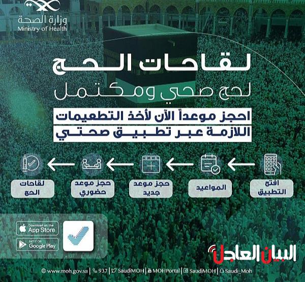 أكدت وزارة الصحة السعودية على الراغبين في أداء مناسك الحج لهذا العام 1444هـ من الداخل بضرورة الإسراع في أخذ لقاحي الحمى الشوكية، والإنفلونزا الموسمية واستكمال التحصين للقاحات فيروس كورونا.