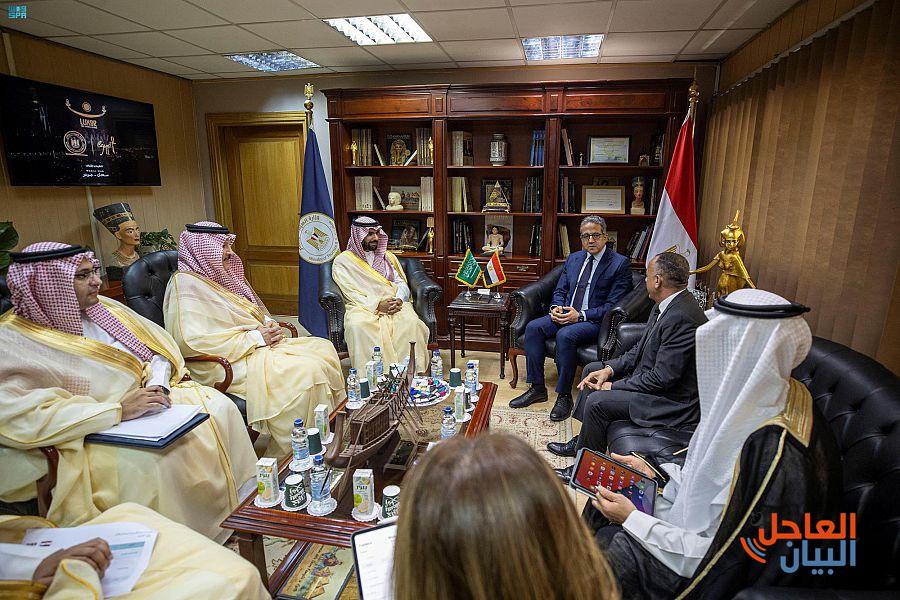 وناقش سموه في مستهل اللقاء، آفاق التعاون الثقافي السعودي المصري وأهمية تنميته وتطويره، انطلاقاً من العلاقات الأخوية العميقة التي تربط المملكة بمصر، إضافةً إلى بحث سُبل تعزيز التعاون في مجالات الآثار والمتاحف وإحياء فنون الحضارة الإسلامية، خاصةً في عمليات تبادل استعارة القطع الفنية الأثرية بين المتاحف السعودية والمصرية.