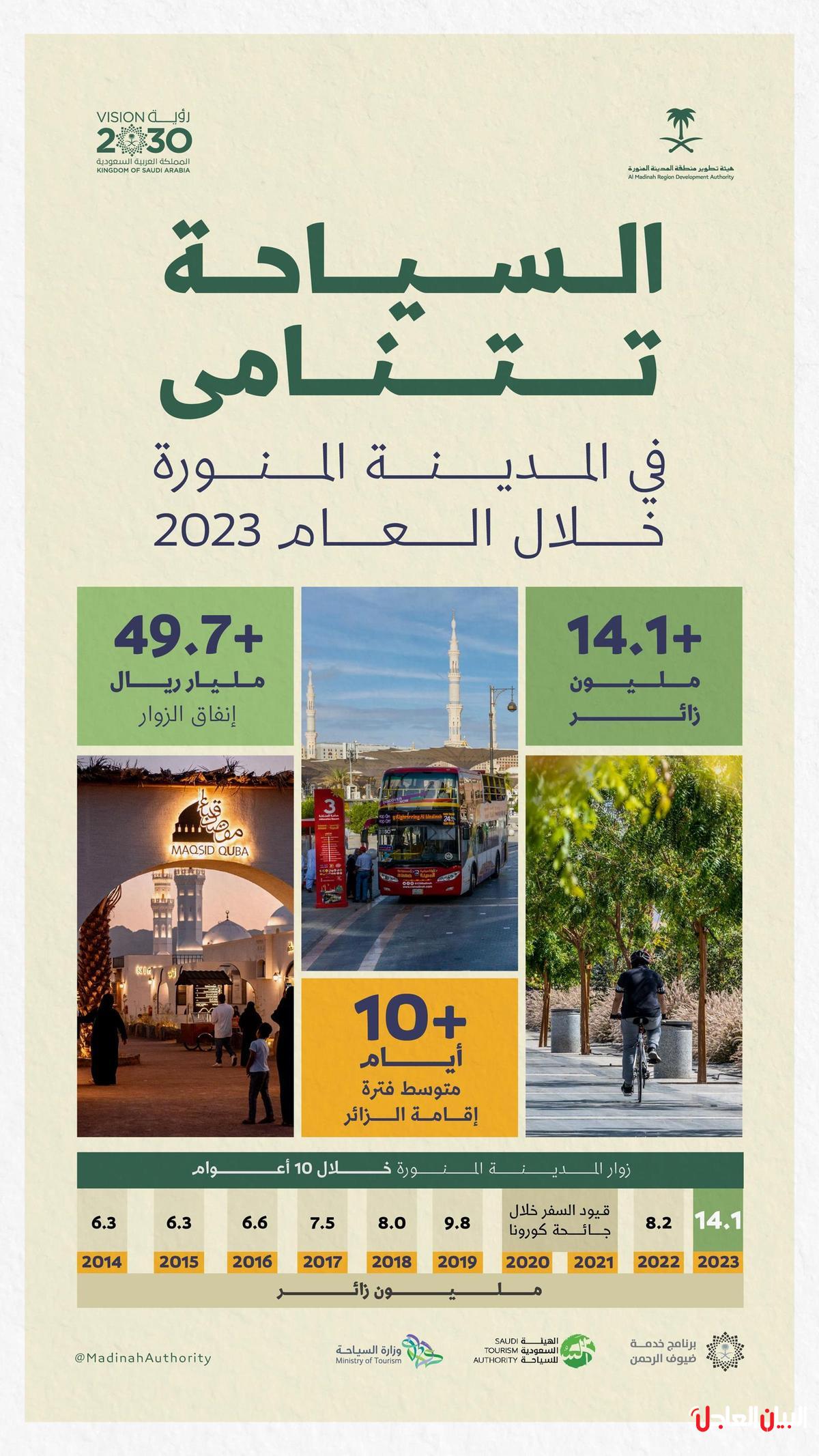 المدينة المنورة تستضيف 14 مليون زائر خلال العام الماضي