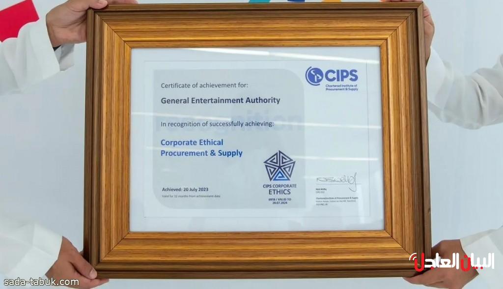هيئة الترفيه تحصل على الشهادة العالمية لأخلاقيات المشتريات